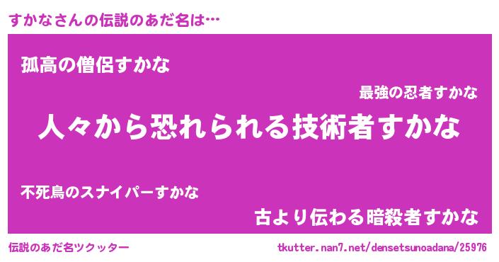 | ヒーロー風カッコイイあだ名 | 『友情の使者すかな』『魔戒騎士スカ』 |