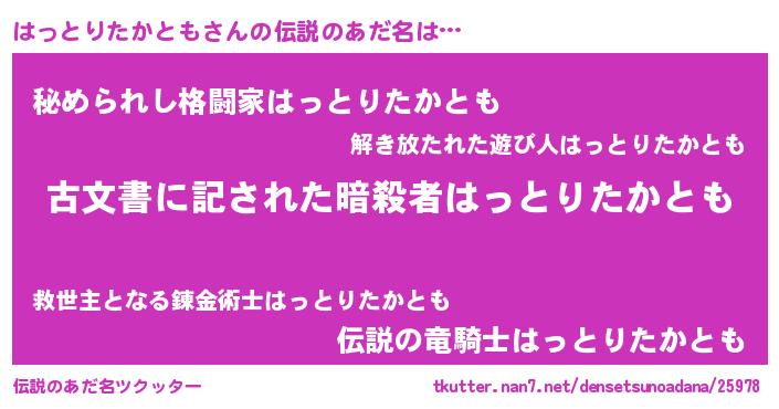 | 意味不明あだ名 | 『永久保存はっとりたかとも』 |