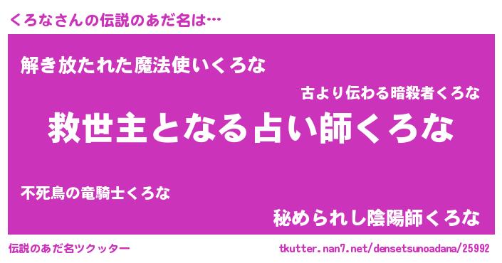| ヒーロー風カッコイイあだ名 | 『天空の使者くろな』『幻影騎士クロ』 |