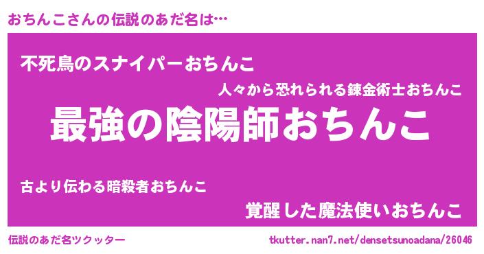 | 男性向けラノベタイトル風あだ名 | 『おちんこに滅ぼされるだけの簡単なお仕事です』 |