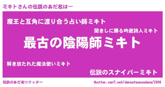 | ファンタジー風あだ名 | 『エターナルミキトー』『クインミット』 |