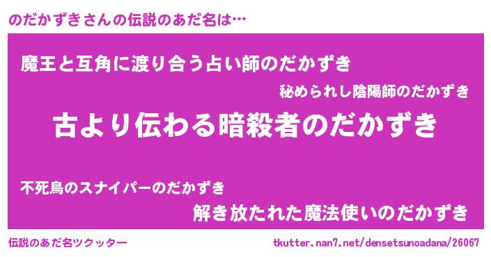| 意味不明あだ名 | 『永久保存のだかずき』『自称のだかずき』 |