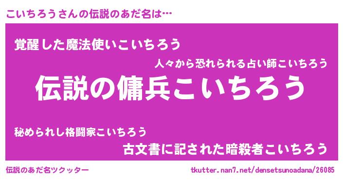 | 男性向けラノベタイトル風あだ名 | 『こいちろうの憂鬱』『緋弾のコイチロウ』 |