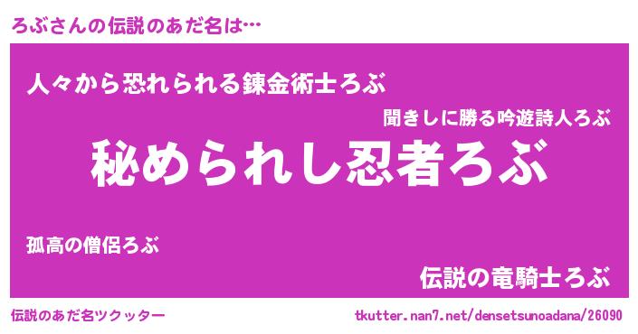 | 男性向けラノベタイトル風あだ名 | 『やはりろぶの青春ラブコメはまちがっている 』 |