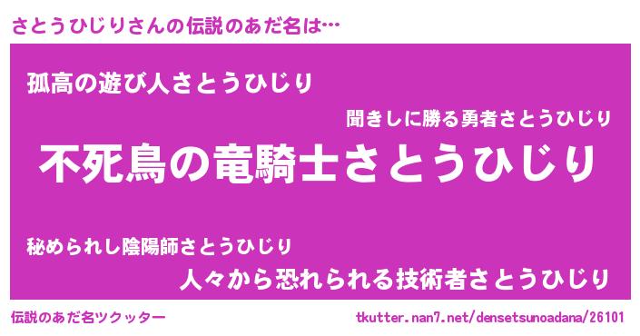 | ポケモン風あだ名 | 『サトチュウ』『ヒサトウヒジリ』 |