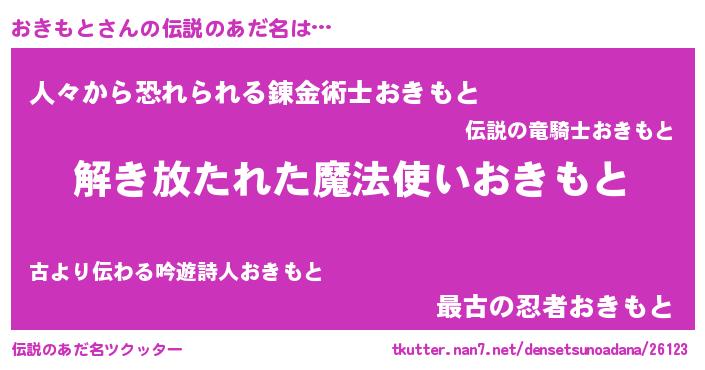 | ヒーロー風カッコイイあだ名 | 『サイバー戦士オキモト』『黄金騎士オキ』 |