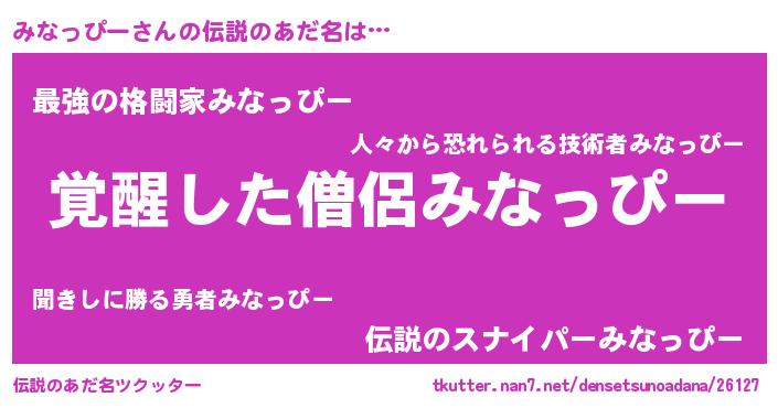 | 男性向けラノベタイトル風あだ名 | 『Re:みなっぴーから始める異世界生活』 |