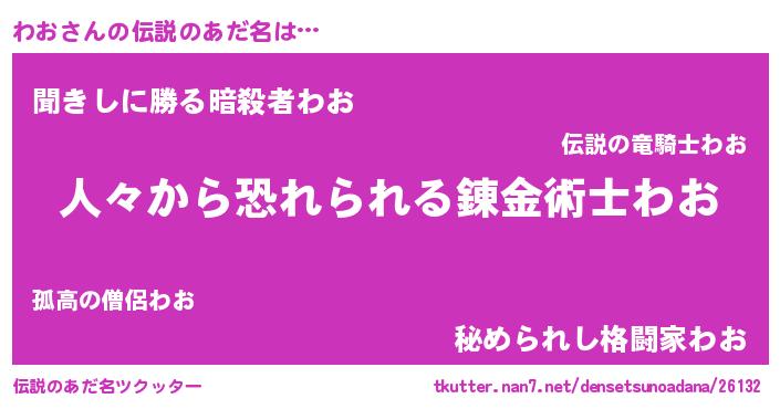 | ヒーロー風カッコイイあだ名 | 『正義の使者わお』『超時空戦士ワオ』 |