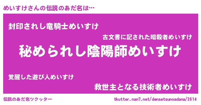 | 意味不明あだ名 | 『めいすけフォーエバー』『自称めいすけ』 |