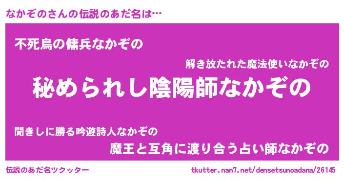 | 男性向けラノベタイトル風あだ名 | 『ナカゾノスレイヤー』 |