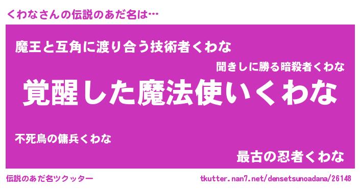 | 意味不明あだ名 | 『とにかく怪しいくわな』『自称くわな』 |