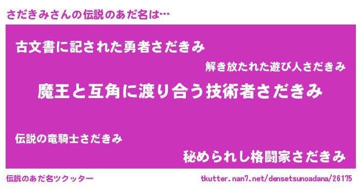 | 男性向けラノベタイトル風あだ名 | 『さだきみに滅ぼされるだけの簡単なお仕事です』 |