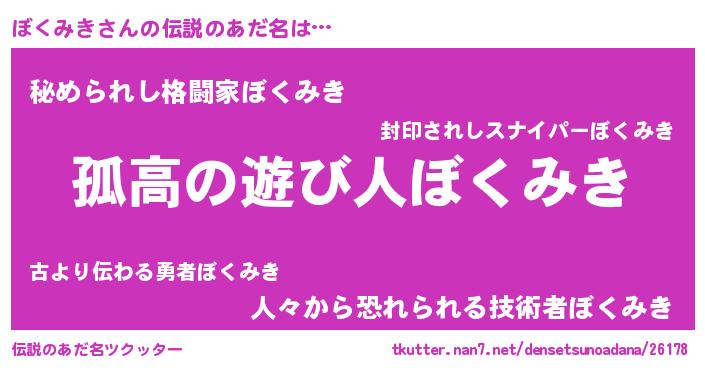 | 男性向けラノベタイトル風あだ名 | 『魔弾の王とぼくみき』 |