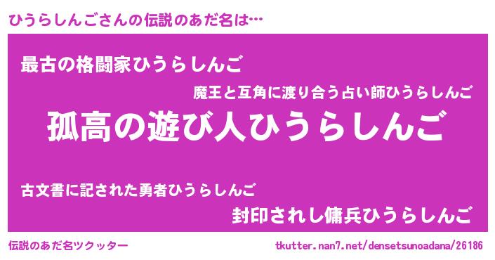 | ヒーロー風カッコイイあだ名 | 『黄金騎士ヒウ』『スーパーヒウラシンゴ』 |