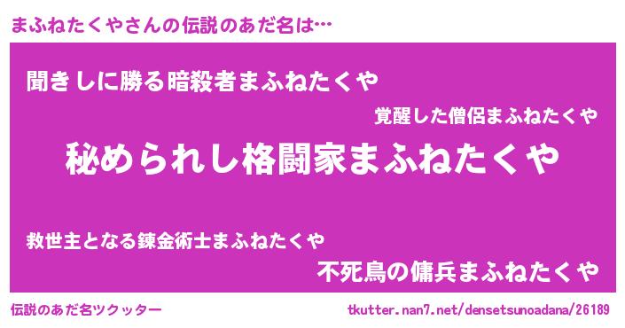 | 意味不明あだ名 | 『まふねたくやフォーエバー』 |