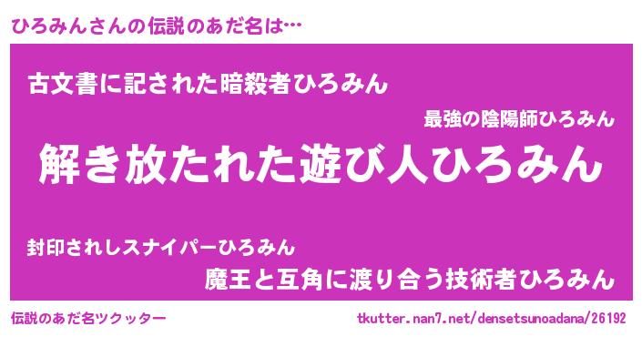| ヒーロー風カッコイイあだ名 | 『最強戦士ヒロミン』『炎刃騎士ヒロ』 |