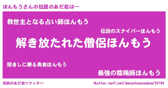 | ヒーロー風カッコイイあだ名 | 『仮面ホンダー』『天弓騎士ホン』 |