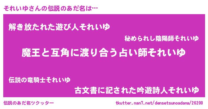 | 意味不明あだ名 | 『自称それいゆ』『永久保存それいゆ』 |