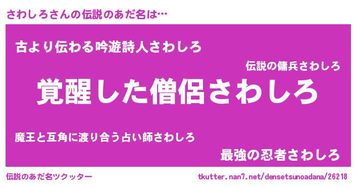 | 意味不明あだ名 | 『とにかく怪しいさわしろ』 |