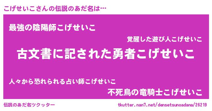 | ヒーロー風カッコイイあだ名 | 『ネオコゲセイコ』『スーパーコゲセイコ』 |