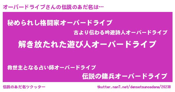 | ヒーロー風カッコイイあだ名 | 『幻影騎士オー』『ネオオーバードライブ』 |