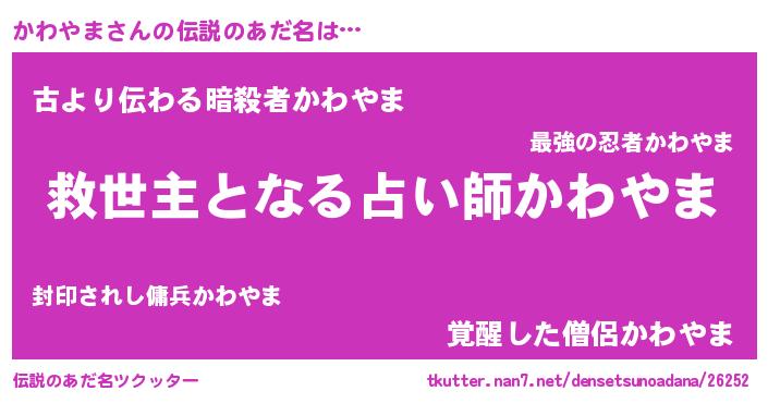 | ヒーロー風カッコイイあだ名 | 『慈愛の使者かわやま』『ネオカワヤマ』 |