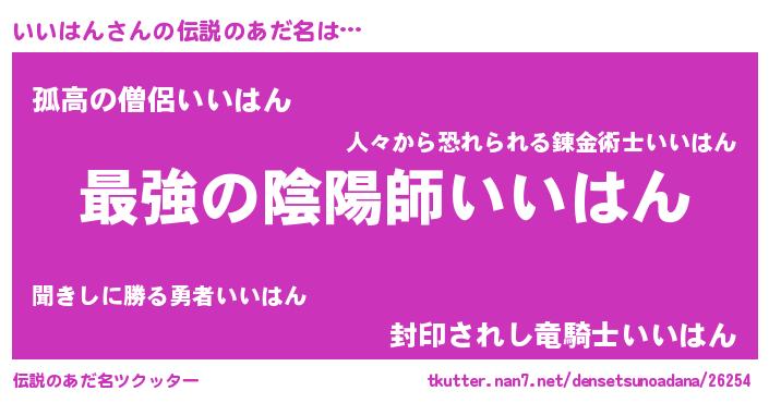 | ヒーロー風カッコイイあだ名 | 『ウルトラいいはんマン』『暗黒騎士イイ』 |