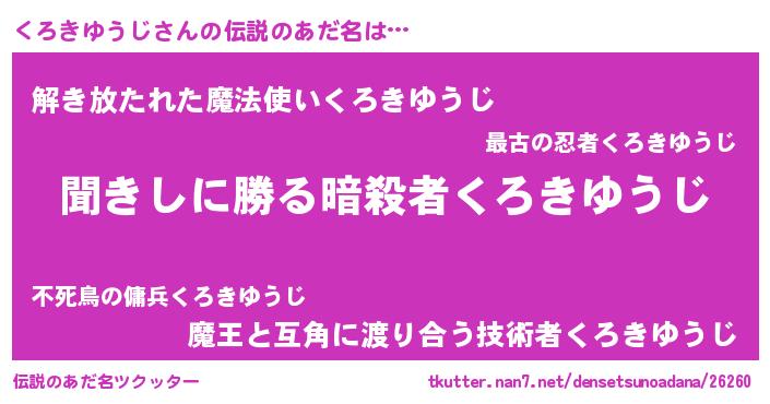 | ヒーロー風カッコイイあだ名 | 『ネオクロキユウジ』『幻影騎士クロ』 |