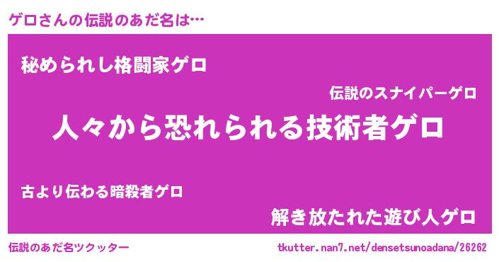 | 男性向けラノベタイトル風あだ名 | 『ゲロスレイヤー』『緋弾のゲロ』 |