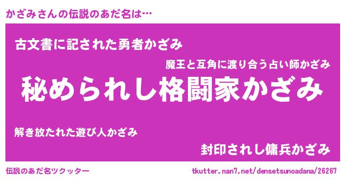 | ヒーロー風カッコイイあだ名 | 『仮面カザダー』『ウルトラかざみマン』 |