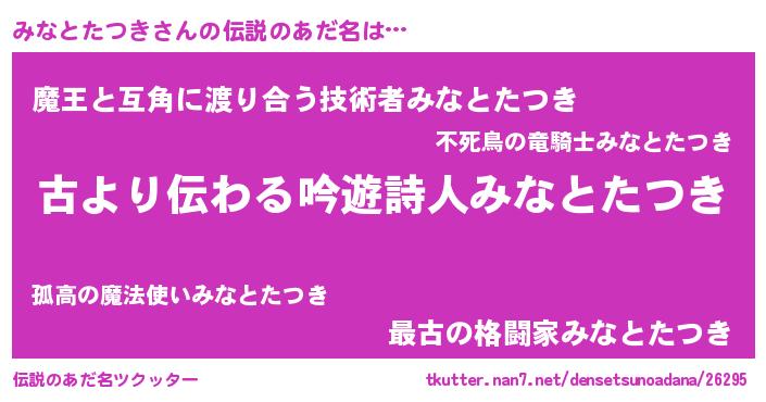 | 意味不明あだ名 | 『永久保存みなとたつき』 |