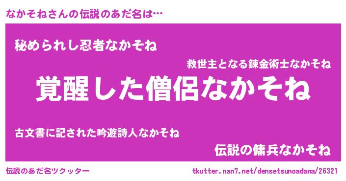 | 意味不明あだ名 | 『自称なかそね』『しいたけ科なかそね属』 |