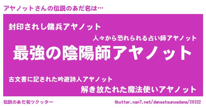 | ヒーロー風カッコイイあだ名 | 『最強戦士アヤノット』『仮面アヤダー』 |