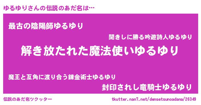 | ヒーロー風カッコイイあだ名 | 『魔戒騎士ユル』『ウルトラゆるゆりマン』 |