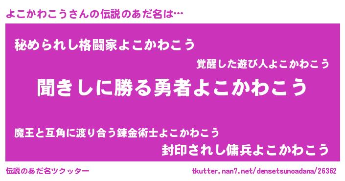 | 男性向けラノベタイトル風あだ名 | 『ヨコカワコウスレイヤー』 |