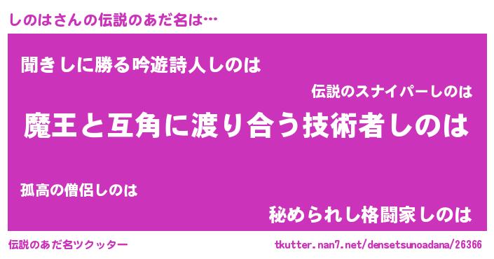 | 女子向けラノベタイトル風あだ名 | 『闇のしのは』『しのは夫妻のなれそめ』 |