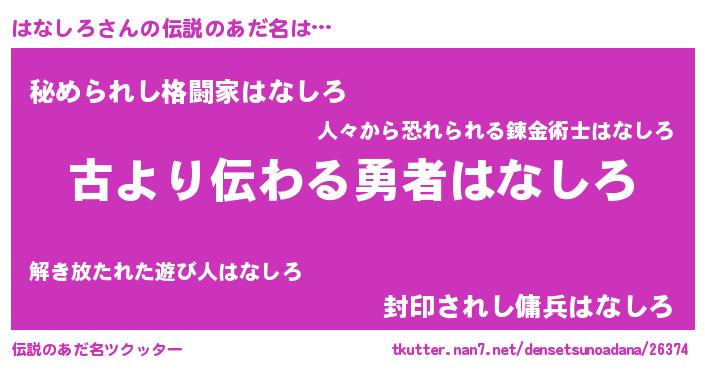 | 意味不明あだ名 | 『たけのこ科はなしろ属』『自称はなしろ』 |