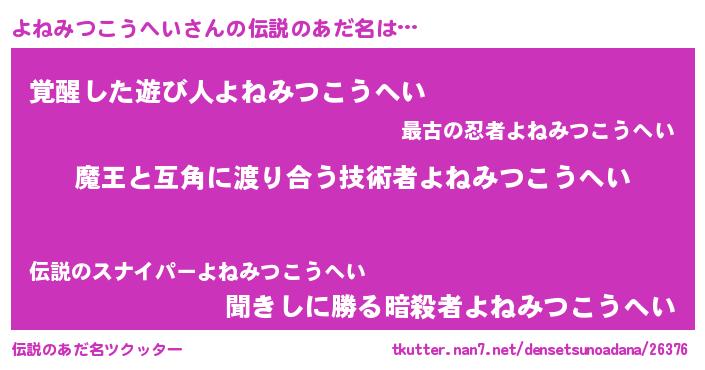 | ヒーロー風カッコイイあだ名 | 『慈愛の使者よねみつこうへい』 |