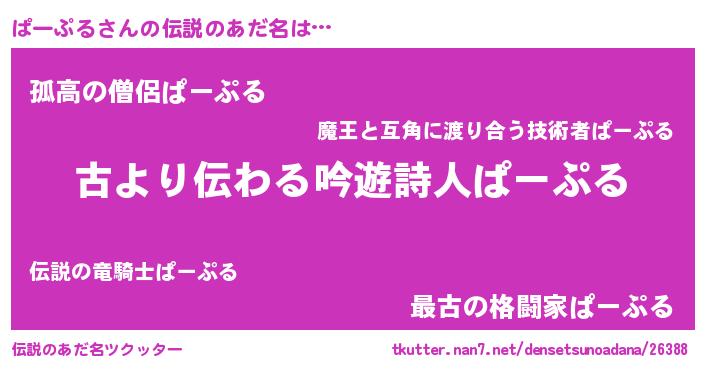 | ヒーロー風カッコイイあだ名 | 『ネオパープル』『仮面パーダー』 |
