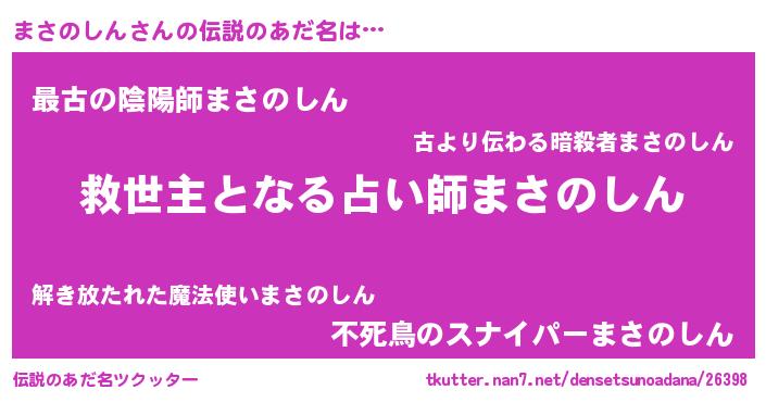 | 女子向けラノベタイトル風あだ名 | 『死神まさのしんの再婚』 |