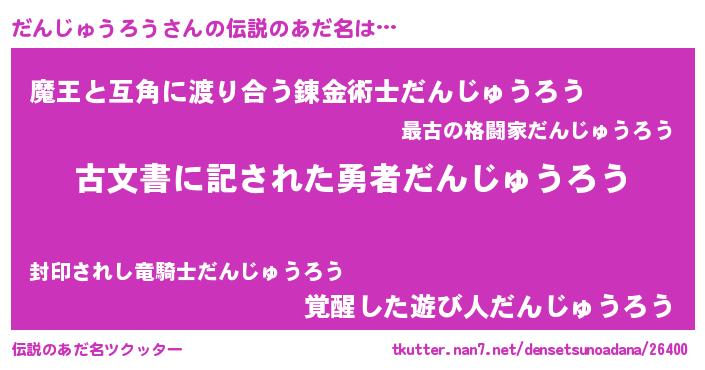 | 男性向けラノベタイトル風あだ名 | 『だんじゅうろうに滅ぼされるだけの簡単なお仕事です』 |