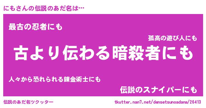 | 胡散臭い通販商品みたいなあだ名 | 『来世でも幸せになれる健康食品…その名も「にも」』 |