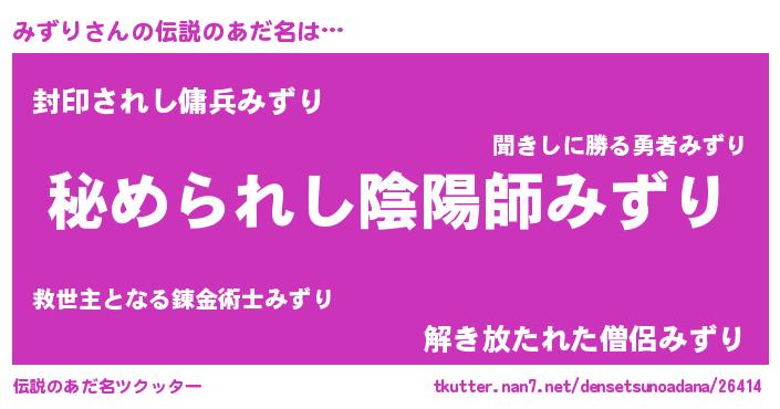 | ヒーロー風カッコイイあだ名 | 『ウルトラ戦士ミズリ』『仮面ミズダー』 |