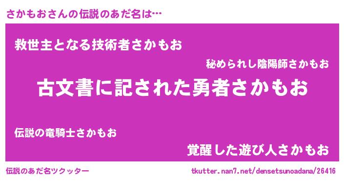 | 意味不明あだ名 | 『永久保存さかもお』『自称さかもお』 |