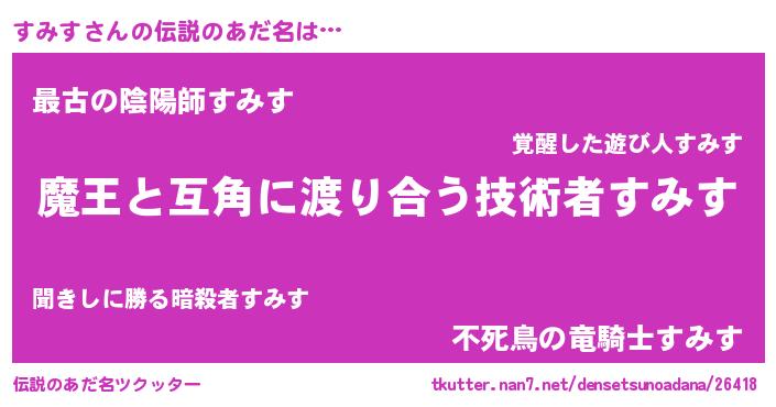 | ヒーロー風カッコイイあだ名 | 『最強戦士スミス』『慈愛の使者すみす』 |