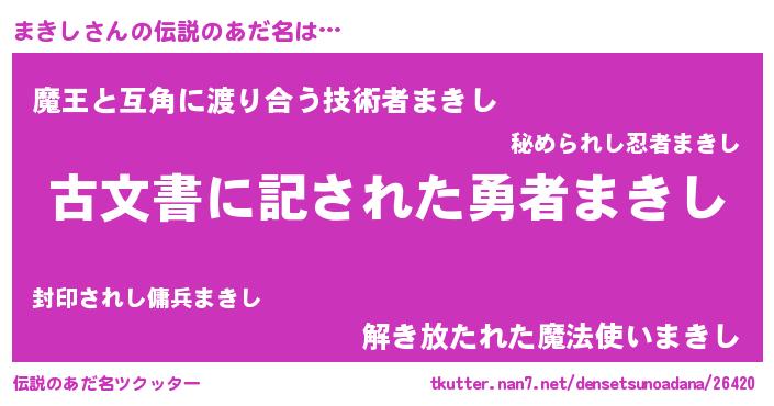 | ヘコむあだ名 | 『まきし(遠い目)』『まきお』 |