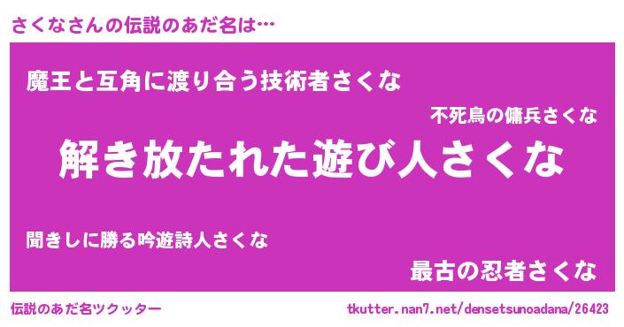 | ヒーロー風カッコイイあだ名 | 『仮面サクダー』『究極戦士サクナ』 |