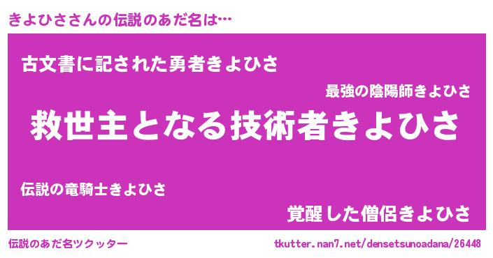 | 男性向けラノベタイトル風あだ名 | 『きよひさに滅ぼされるだけの簡単なお仕事です』 |