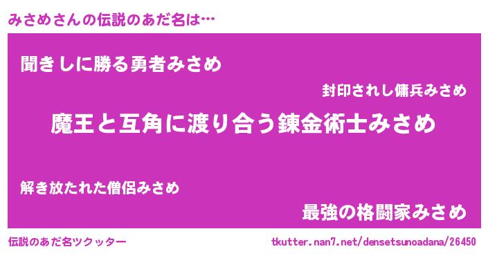 | ヒーロー風カッコイイあだ名 | 『慈愛の使者みさめ』『ネオミサメ』 |