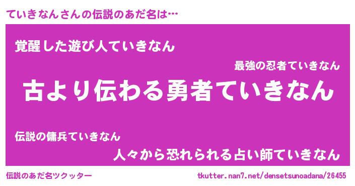 | ヒーロー風カッコイイあだ名 | 『仮面テイダー』『究極戦士テイキナン』 |
